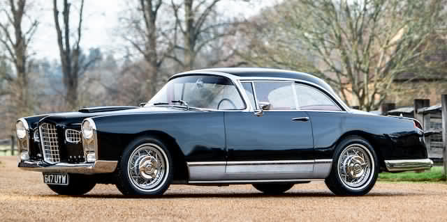 The FV1 is the second Facel Vega made and this is a four seater with 4.8 litre Chrysler De Soto V8 engine and a two speed automatic gearbox, made in 1955. It is lot 38 in the sale, Belgian registered with the appropriate FV1 registration, and it was restored in the eighties. The estimate is £300-£380,000. Click here for more: https://www.bonhams.com/auctions/26997/lot/38/
